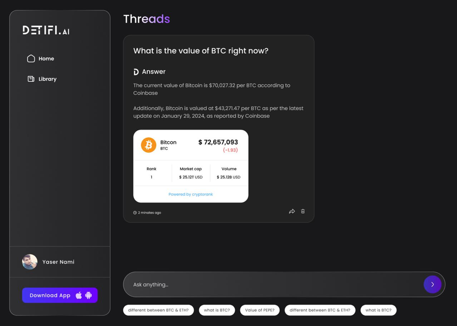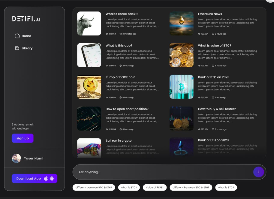 Detifi.ai is an AI-driven financial intelligence platform focused on the crypto market. It delivers deep insights into coins, tokens, and NFTs by combining real-time data analysis with social sentiment tracking.